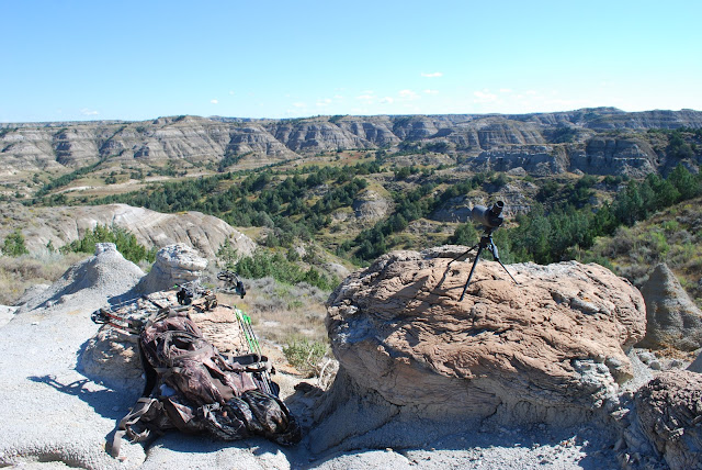 Well I won't draw out the story of the stalk. I literally climbed two rock facings just to get to within 231 yards of this beast as he spotted me. There was a hole behind him that we didn't know he had view of. There was no wind all week so I was the only movement in the entire world to this deer and he bolted. We gave chase and actually jumped him bedded again at 60 yards and he ran out of our lives after that.